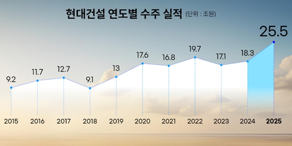 현대건설은 2025년 수주 실적을 집계한 결과 연간 수주 25조5151억 원(추정치)을 기록했다고 8일 밝혔다.