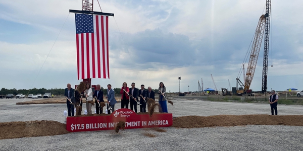 ▲ 루이지애나 주지사와 우드사이드에너지 경영진이 2025년 9월15일 LNG 수출 시설 기공식에서 첫 삽을 뜨고 있다. <연합뉴스>