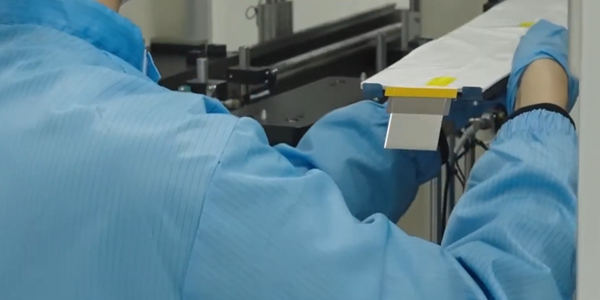 ▲ SES AI 소속 작업자가 충북 충주에 위치한 공장에서 파우치형 배터리를 옮기고 있다. < SES AI 유튜브 영상 갈무리 >