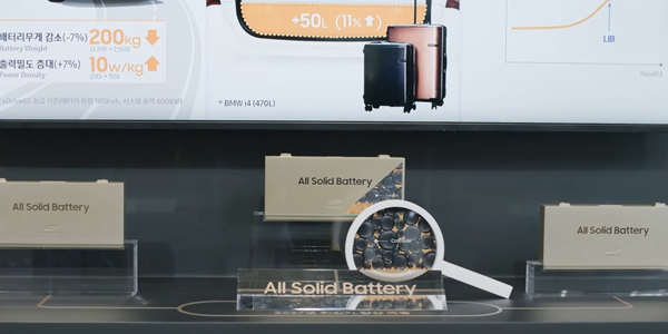 | ▲ 삼성SDI가 2025년 3월5일 서울 강남구 코엑스에서 열린 인터배터리 현장에 전고체 배터리 모형을 전시했다. < 삼성SDI 유튜브 영상 갈무리 > |