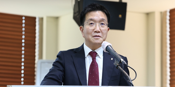 ▲ 박성혁 한국관광공사 사장이 외래관광객 3천만 명 달성 시기를 기존 2030년에서 2028년으로 2년 당긴다는 목표를 제시했다. 사진은 박 사장이 7일 원주 본사에서 열린 취임식에서 발언하는 모습. <한국관광공>