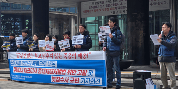[비즈니스포스트] 전국택배노동조합이 쿠팡CLS 대표이사 3인을 중대재해처벌법 위반 혐의로 고발했다.