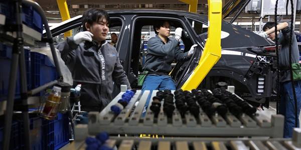 | ▲ 중국 안휘성에 위치한 전기차 공장에서 노동자들이 작업하고 있다. <연합뉴스> |