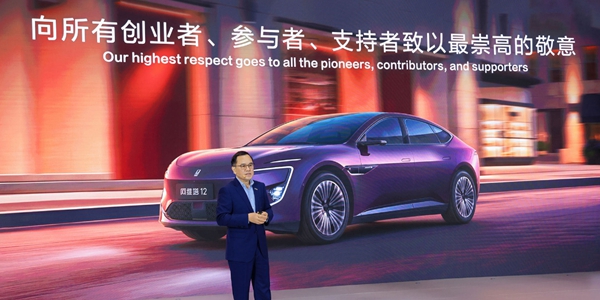 | ▲ 주화룽 창안자동차그룹 회장이 2025년 12월10일 충칭에서 진행한 차량 출시 기념식에서 연설하고 있다. <창안자동차> |