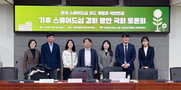 11일 국민연금기후행동, 경제개혁연대, 더불어민주당 남인순·김윤 의원 등은 서울 여의도 국회에서 '한국 스튜어드십 코드 개정과 국민연금 기후 스튜어드십 강화 방안' 토론회를 열었다.