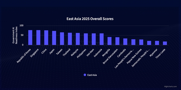 17일 영국 전략 컨설팅 기관 옥스퍼드 인사이트가 발표한 ‘2025 정부 AI 준비도 지수’ 보고서에 따르면 한국은 전 세계 195개국을 대상으로 한 평가에서 종합 점수 76.9점을 기록해 글로벌 5위, 동아시아 1위를 차지했다.