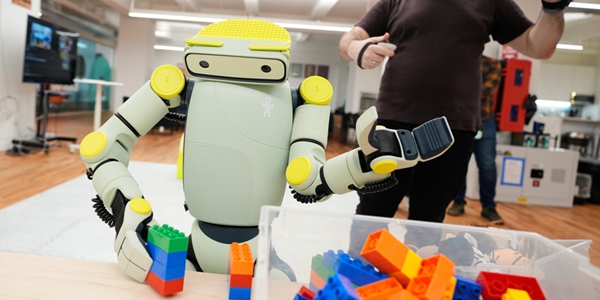 | ▲ 아마존이 인수한 파우나로보틱스의 휴머노이드 스프라우트가 1월14일 미국 뉴욕에서 열린 시연회에서작업자 동작을 따라 블럭을 쌓고 있다. <연합뉴스> |