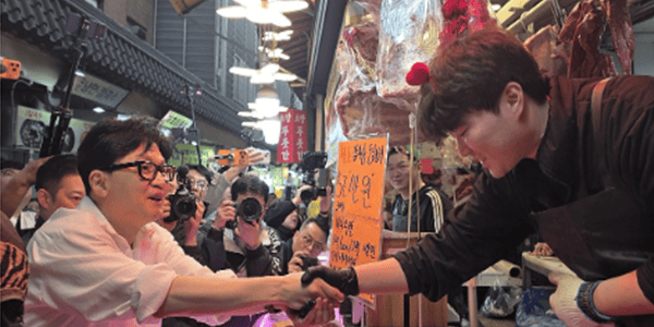 ▲ 국민의힘에서 제명된 한동훈 전 대표가 11일 경기 수원 팔달문 인근의 전통시장을 찾아 시민들과 만나고 있다. <연합뉴스>