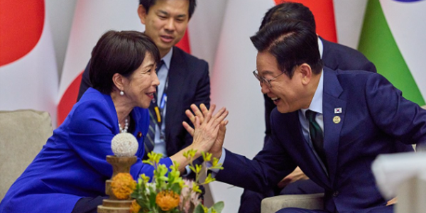 ▲ 이재명 대통령이 2025년 11월23일(현지시각) 주요 20개국(G20) 정상회의가 열린 남아프리카공화국 요하네스버그 나스렉 엑스포센터에서 다카이치 사나에 일본 총리와 약식 정상회담을 하고 있다. <연합뉴스>