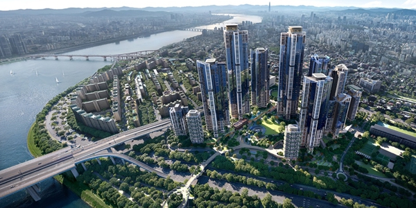 재건축사업으로 2구역에는 최고 65층, 14개 동, 2571세대 규모 공동주택과 부대복리시설이 조성된다. 총 공사비는 2조7489억 원으로 계획됐다. 김환 기자