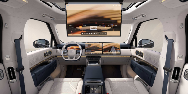 특히 차량 천장에 달린 17형 RSE는 삼성디스플레이와 지커가 세계 최초로 공동 개발한 '윙 스타일 슬라이딩 스크린'이 적용됐다.