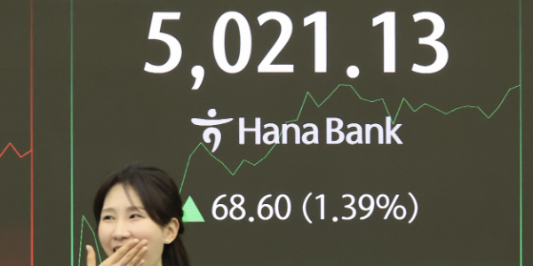 ▲ 코스피가 23일 오전 장중 5020선 위로 올라서며 사상 최고가를 경신했다. 사진은 23일 서울 중구 하나은행 본점. <연합뉴>