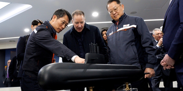 그와 캐나다 정부, 기업 관계자 등 30여 명은 거제조선소의 조립공장과 용접로봇을 활용한 생산자동화 설비를 살폈다.