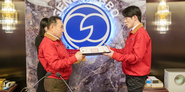 2일 사령식에서는 윤홍근 제너시스BBQ 회장이 신입사원 전원에게 사령장을 직접 수여하는 행사도 함께 진행됐다.