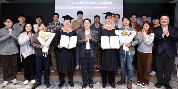 LG는 지난 3일 서울 마곡 K스퀘어에 위치한 LG AI대학원에서 사내 과정으로 학위 과정을 끝낸 2명의 학위수여식을 진행했다.