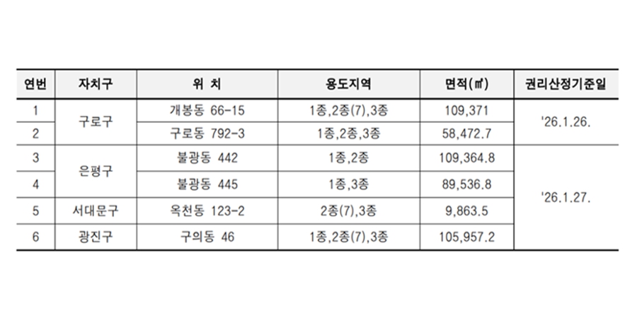 서울시는 지난 23일 ‘2026년 제1차 주택재개발 후보지 선정위원회’를 열고 구로구 개봉동 66-15와 은평구 불광동 442 등 6곳을 신속통합기획 주택재개발 사업 후보지로 선정했다고 25일 밝혔다.