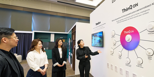 ▲ LG전자 7일부터 나흘 동안 부산에서 'LG 이노페스트 2026 아시아태평양'을 열고 아시아∙태평양 20여 개국 협력사를 대상으로 자사 가전 제품 등을 소개한다. LG전자 직원이 해외 협력사 관계자들에게 LG전자 홈 솔루션 '씽큐'를 설명하고 있다. < LG전자 >