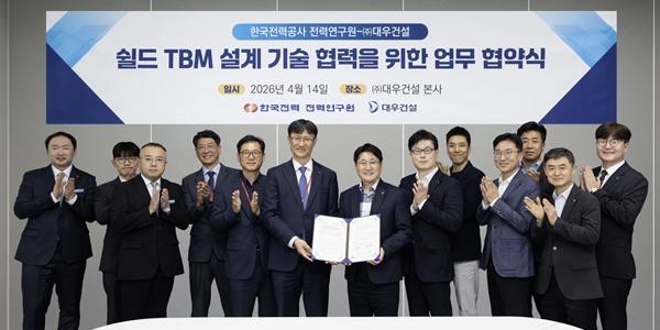 대우건설이 한국전력공사와 터널 분야에서 기술협력을 강화한다.대우건설은 한전과 'TBM(Tunnel Boring Machine) 설계기술 고도화'를 위한 업무협약을 체결했다고 15일 밝혔다.지난 14일 서울 중구 대우건설 본사에서 열린 협약식에는 심철진 대우건설 토목사업본부장과 김대한 한전 전력연구원장 등 양사 주요 관계자들이 참석했다.TBM은 철도, 도로, 전력구 등 터널 건설에 활용되는 대형 굴착 장비로 지반 특성에 맞는 장비 선정과 운용 설계가 사업의 성패를 좌우하는 핵심 요소이다.양 기관은 이번 협약을 통해 TBM 사업 관련 연구개발 및 기술교류 전반에 걸친 포괄적 협력체계를 구축하기로 했다.구체적 협력 분야는 △국내외 TBM 굴진 데이터베이스(DB) 상호 공유 △TBM 굴진속도 및 굴착도구 마모량 예측 모델 검증 및 고도화 △TBM 데이터베이스 관리시스템(T-DBMS) 및 장비 검수 노하우 공유 등이다.양사는 단순 기술 교류를 넘어 세미나, 현장 방문 등 인적