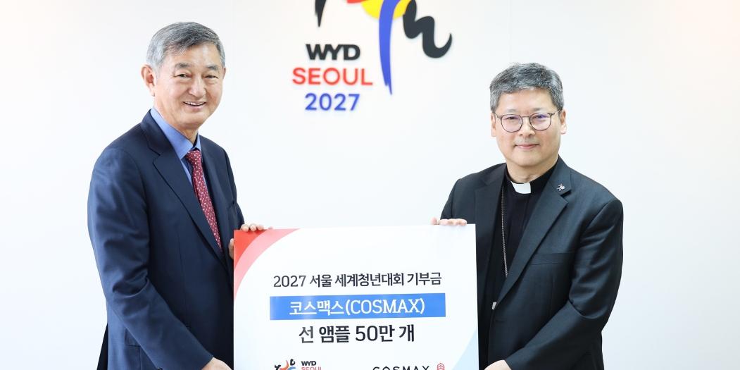 화장품 제조자개발생산(ODM)업체 코스맥스가 천주교 서울대교구에 선케어 제품 50만 개를 기부했다.코스맥스는 14일 서울 중구 명동성당에서 천주교 서울대교구와 '2027 서울 세계청년대회 기부 약정식'을 진행했다고 15일 밝혔다.약정식에는 정순택 서울대교구 대주교와 이경수 코스맥스그룹 회장, 최경 코스맥스 부회장 등 양측 관계자들이 자리했다.세계청년대회는 전 세계 가톨릭 청년들이 모이는 대표적 국제 행사로 2027년 7월 서울에서 처음 열린다. 행사 기간 최대 100만 명이 방문할 것으로 예상된다.코스맥스는 대회가 한여름에 열리는 점을 고려해 장시간 야외 활동에 나서는 참가자들이 자외선과 무더위에 대비할 수 있도록 이번 기부를 결정했다.회사는 이번 기부가 세계 각국 청년들에게 한국 화장품 산업의 기술력과 품질 경쟁력을 알리는 계기가 될 것으로 보고 있다.이경수 코스맥스그룹 회장은 '전 세계 청년들이 모여 연대와 평화의 가치를 나누는 행사에 함께할 수 있어 뜻깊다'며